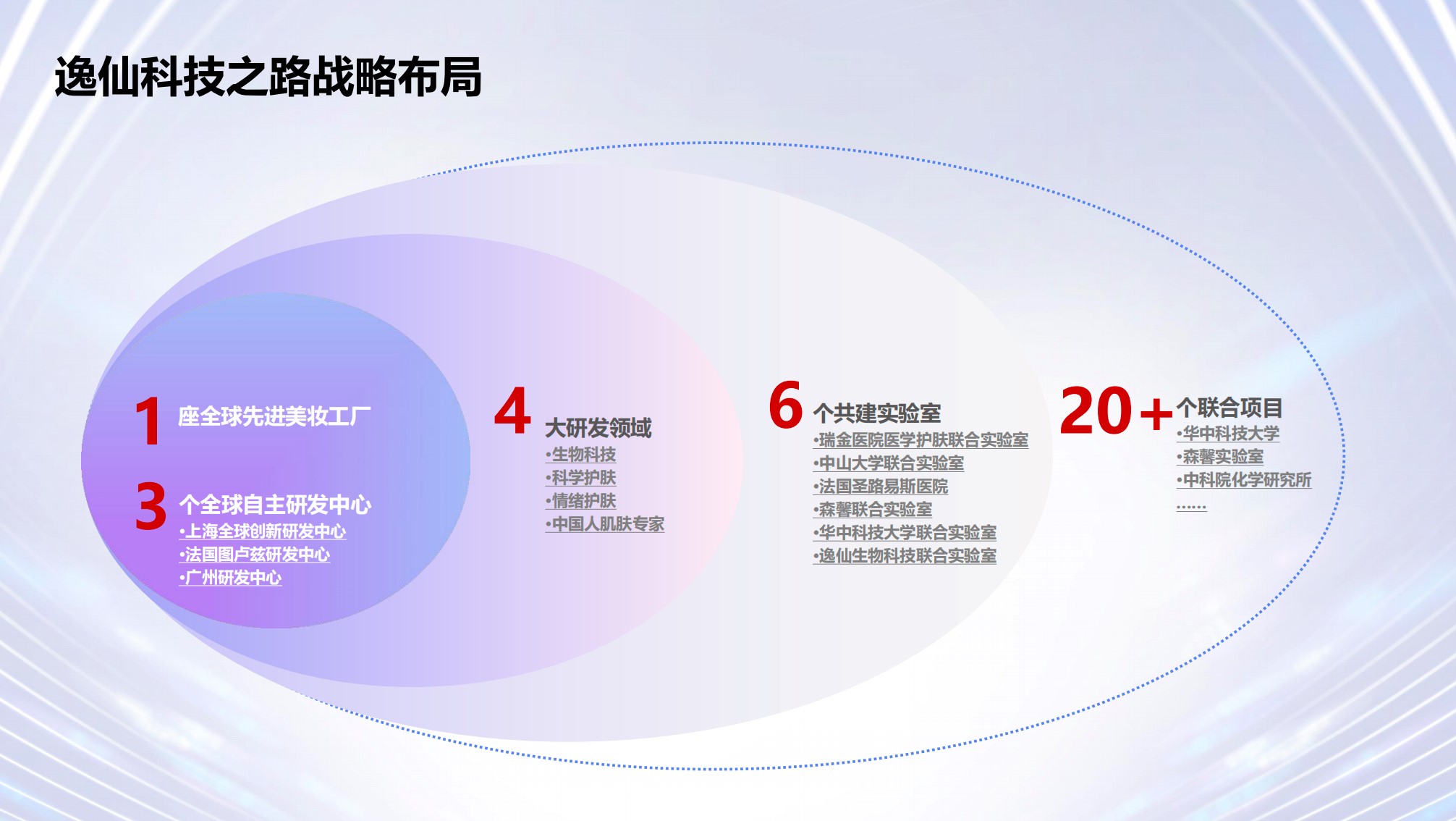 对于成为“新科技时代的健康美丽探索者”这件事,逸仙集团是认真的。“1座全球先进美妆工厂、3个全球自主研发中心、4大研发领域、6个共建实验室和20+个联合项目”既是“逸仙科技之路”的精华所在。