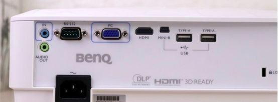 明基i705拥有HDMI、USB等多种接口模式,各个接口之间的间距合理,方便用户同时接驳多个设备