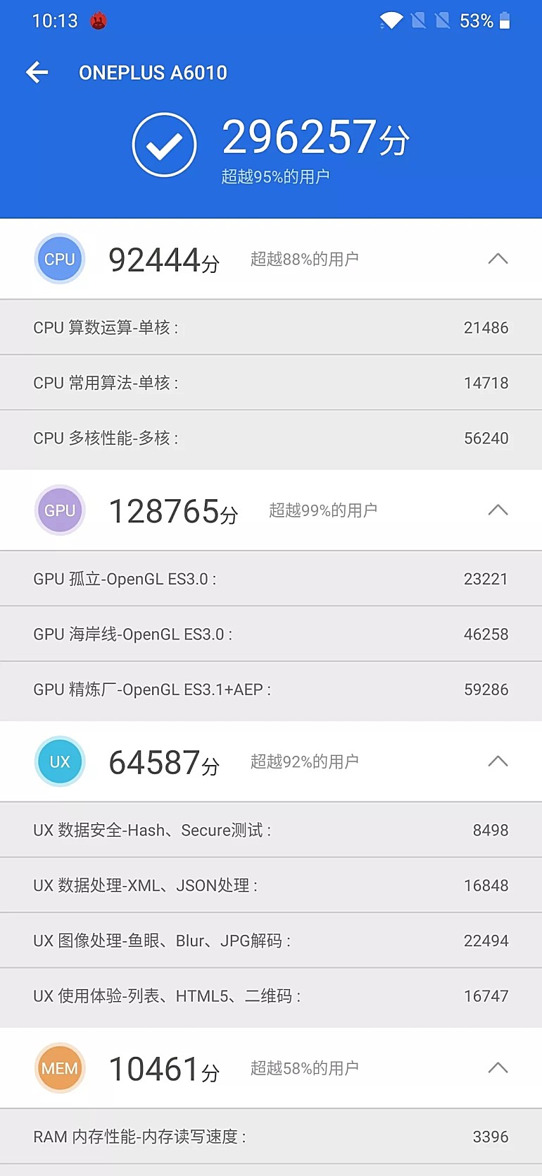 OnePlus 6T安兔兔跑分轻松上29万,此次它还搭载了一加实验室研发的Smart Boost载入加速技术,不是什么吓人的技术,但很实用,挖掘8GB内存的优势,进一步缩短应用的启动加载等数据读取时间。