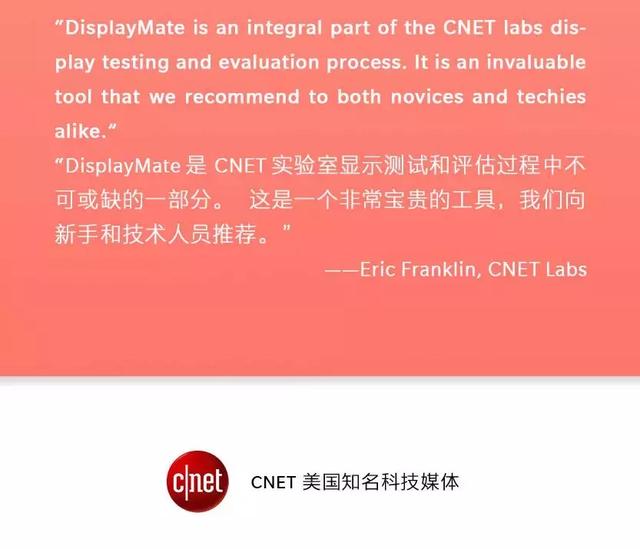 特别值得一说的是,虽然由于DisplayMate不会针对某个市场、 往往只测试苹果三星等国际旗舰的手机,国内知晓的人并不多,但在国外知名度相当高,知名外媒CNET甚至说:“DisplayMate是CNET实验室显示测试和评估过程中不可或缺的一部分。这是一个非常棒的工具,无论你是技术小白、高手,我们都非常推荐你使用。”