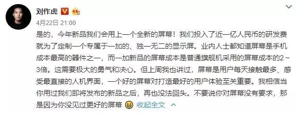 从这一系列参数中我们可以看出,今年的一加7新品在配置上可谓不遗余力,基本上都是最好的,虽然这只是爆料的消息,但发布会临近,其准确度相对来说还是比较高。在如此顶级的配置之下,最终的售价也有一定幅度的上涨。