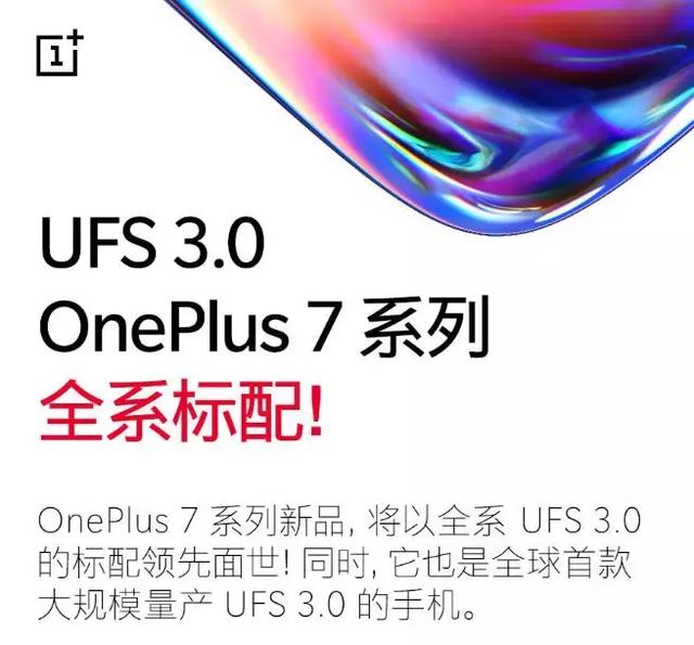 今天,一加手机官方宣布,即将发布的新旗舰一加7系列将全系标配UFS 3.0闪存。虽然在发布时间方面,一加并没有成为全球首发,但是随着首发UFS3.0的三星折叠屏手机Galaxy Fold的跳票,5月16日发布的一加7系列则成了全球消费者能拿到的首款采用UFS 3.0 的手机。
