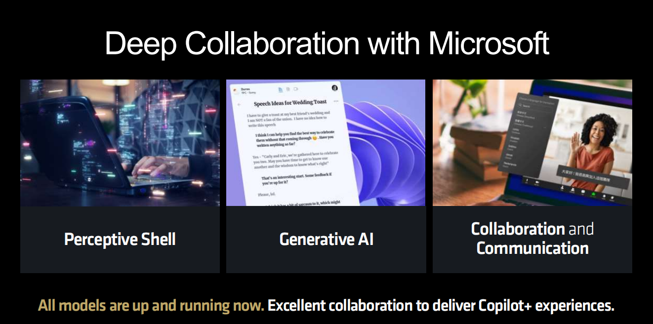 在硬件方面,XDNA 2已经交出了令人满意的答卷,那么在配套的生态圈部分呢?AMD与微软多年来的深度合作已经在AI生态圈的打造方面有了巨大的进展,包括感知壳体、生成式AI和协作与沟通,目前所有的模型都已经可以工作,在基于XDNA 2架构的NPU上,可以获得出色的Copilot+体验。