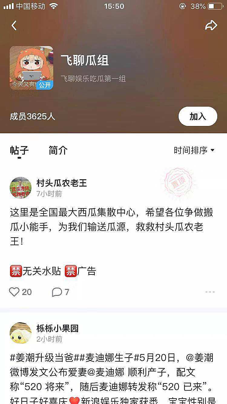 点开“发现小组”中的“飞聊瓜组”,可以看到小组里发布的帖子,选择加入该小组,就能发帖。在王二小看来,这更像豆瓣的“豆瓣小组”的配置。