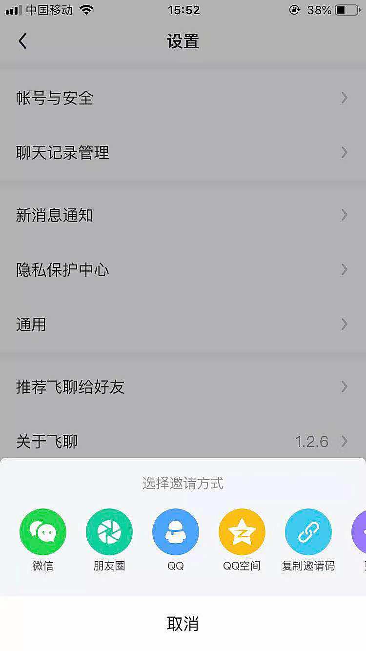 目前,飞聊APP的推荐方式,主要是微信、朋友圈、QQ、QQ空间为主,主要都是腾讯系的地盘。