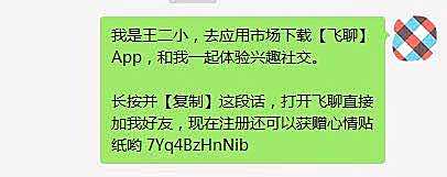 随后,微信方面又修改了封禁文案,目前,用户在微信内点击飞聊官网和二维码好友邀请及分享口令,提示语已经改为:“长按并复制这段话,打开飞聊加好友”。