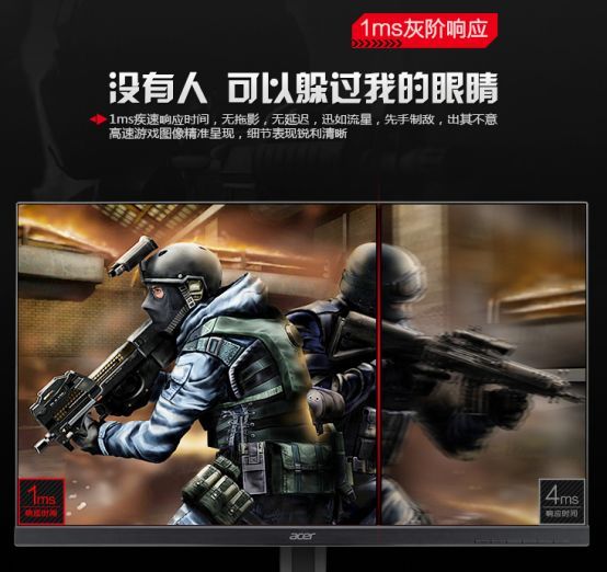 虽说都能满足高刷新率显示器的需求,但是在实际的游戏过程中,特别是画面经常高速切换、移动的FPS游戏中,很多玩家还是能感受到响应时间为1ms的画面物品边缘更清晰,移动更平滑,视觉体验相对来说要略好。而如果是其他的RPG、RTS等游戏中,其实两者之间的差距就不那么容易看得出来了。