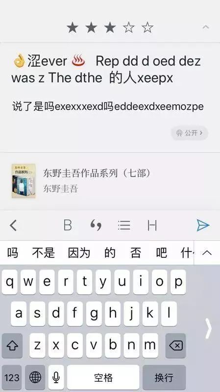 除了自动进入携程定总统套房外,按照当事人的介绍,此前手机还自动点进了微信读书,在东野圭吾的作品下面打下书评,其中汉语多是“说了是吗?”以及一些英文乱码。另外,还出现过手机自动定火车票的情况,当事人发现手机正在勾选乘车人时立马将其关闭。