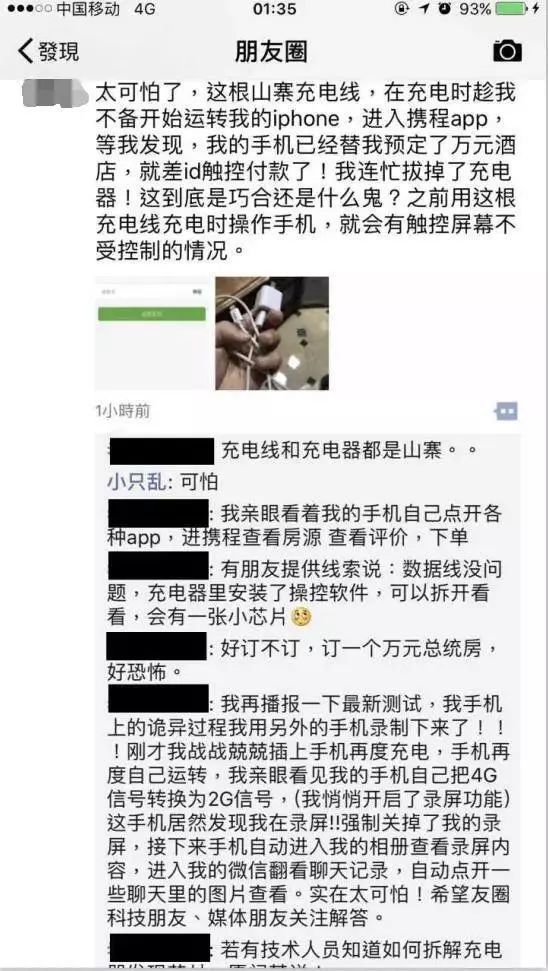 最后得出结论:这个案例中,当事人遇到的根本不是什么黑客木马、远程操控、间谍充电宝,就是很普通的充电头滤波失效,手机电容屏受到静电影响,乱跳失灵。