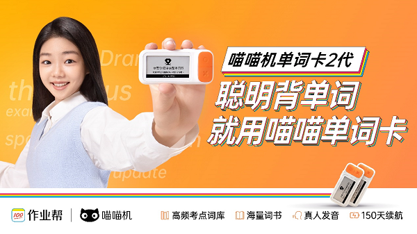 继在行业内首家发布电子单词卡、开创了智能硬件的全新品类后,7月27日,作业帮召开媒体沟通会,发布新品喵喵单词卡2代,倡导“聪明”背单词。据了解,喵喵单词卡2代除了延续上一代产品的电子墨水屏、海量词库及超长续航等产品特色外,还内置了覆盖中考、高考及大学四六级考试的“高频考点词库”,并结合艾宾浩斯遗忘曲线细分单词记忆状态,帮助学习者“聪明学”、“聪明背”。