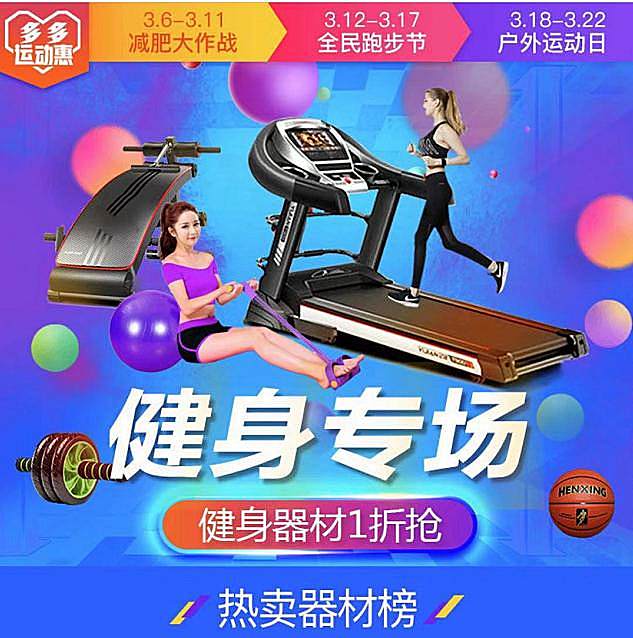 “3·8女神节”大促期间,拼多多推出健身专场,联合多家品牌大幅让利