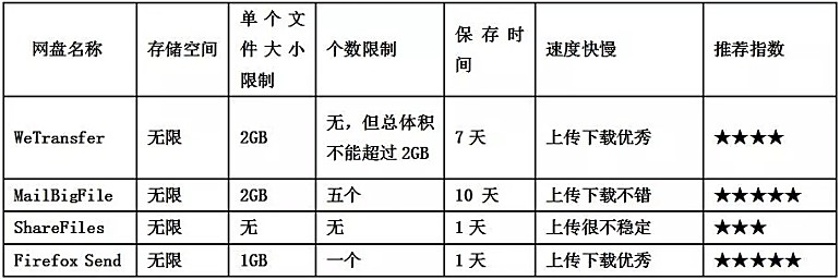 通过上面的体验对比,相信大家对这几款网络硬盘的功能都有所了解,这次体验对比的网络硬盘功能侧重点不同,比如Firefox Send主打的是安全和隐私;ShareFiles则侧重于传输分享更多的文件信息;而MailBigFile和WeTransfer则更加兼顾平衡性,既可以保证传输文件的体积,又可以兼顾分享方式的选择。