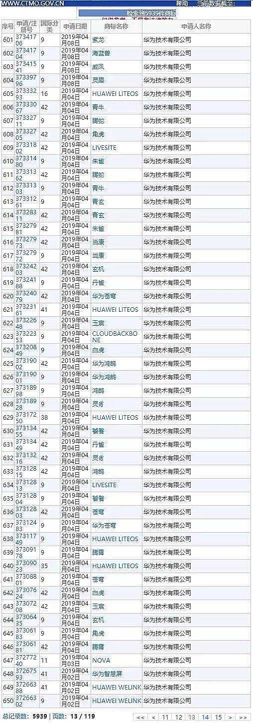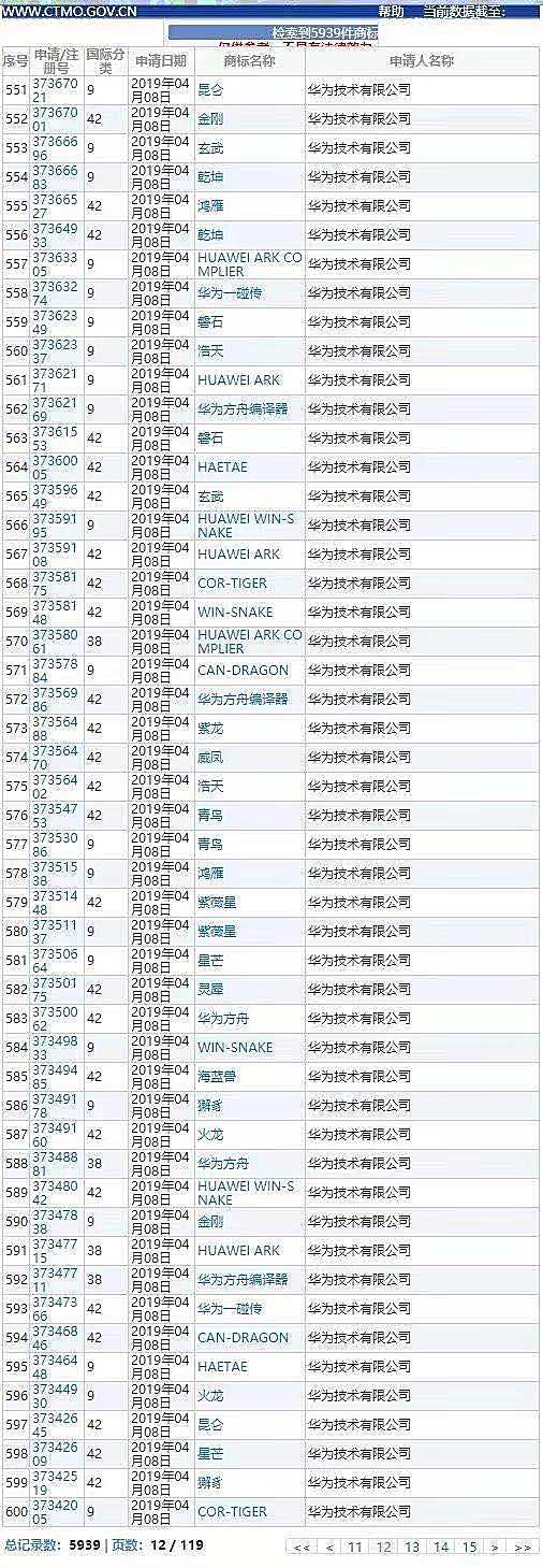 除此之外,华为还注册了昆仑、金刚、玄武、乾坤、磐石、浩天、青鸟、朱雀、腾蛇、青牛、紫龙、青玄、当康、玄机、白虎、灵豸(zhì)、饕餮……