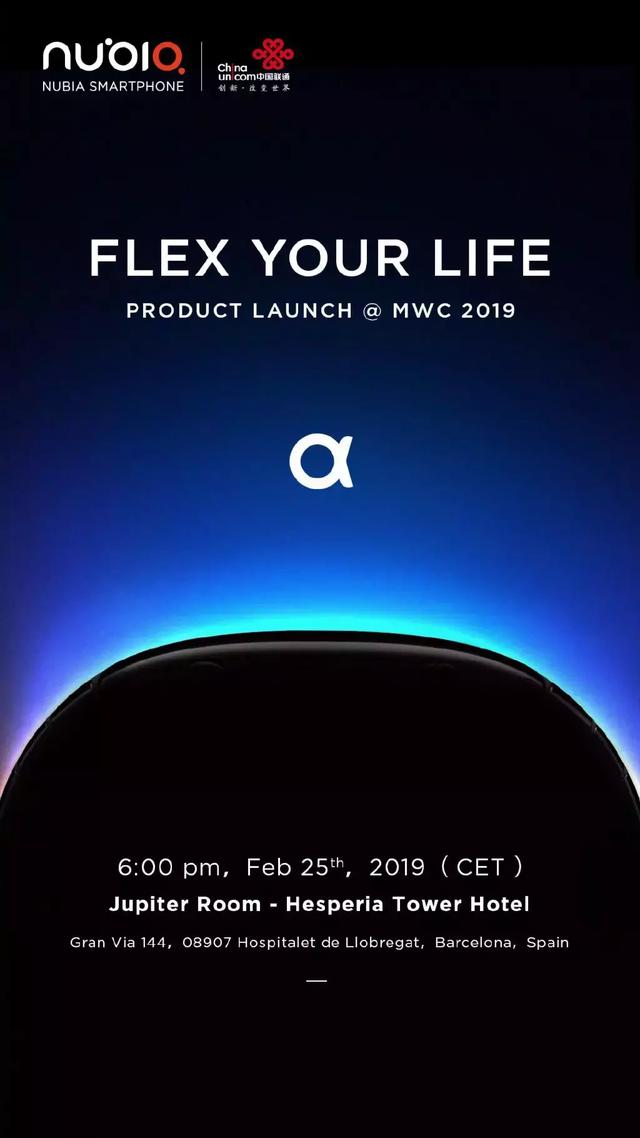 虽然三星选择在MWC前夕发布Galaxy Fold折叠屏手机,但也有厂商打算在MWC展会上正式发布,努比亚就宣布将于开展当天发布折叠屏产品。据之前的宣传视频来看,此次展会上很有可能发布一款代号“nubia α”手表型手机,不过具体如何,还是等到展会开始后,我们为您正式揭晓吧。