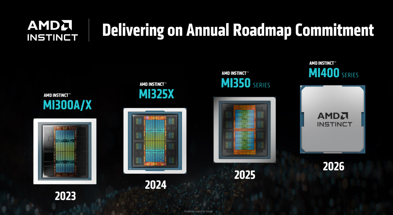 从AMD INSTINCT GPU的发展路线图来看,自2023年的MI300系列、2024年的MI325X之后,今年的MI350系列当然是按计划如期登场了,而在这之后,MI400系列也会在明年露面。按照目前AI应用需求爆发式增长的态势,AMD在AI计算卡这方面的战略可谓是与时俱进,并且持续保持了业界领先的地位。