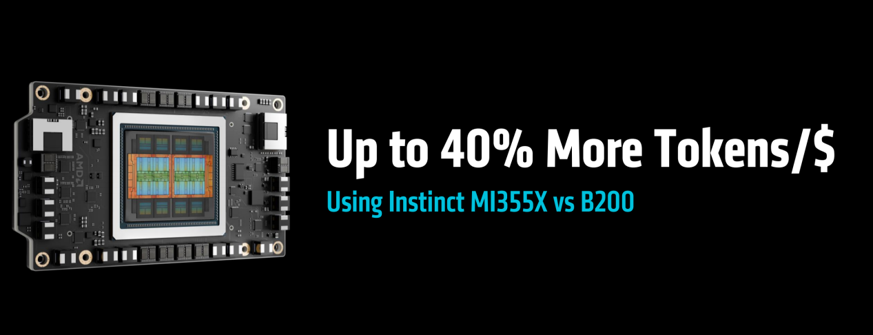 如果计算每美元Tokens,那么MI355X相对B200大约领先了40%,可以说在性价比方面实现了远超,这对于企业用户来说就意味着选择MI355X可以在提供相同性能的前提下节约大量预算。