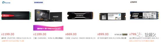 480GB-512GB NVMe M.2 SSD京东报价情况