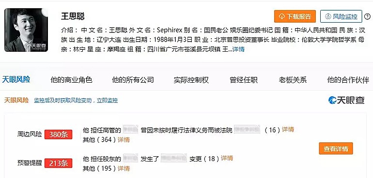 锌刻度(ID:beefix)在天眼查发现王思聪名下一共有46家公司,其中他担任法人的有9家,100%控股的只有是北京普思投资有限公司和珺娱(湖州)文化发展中心。