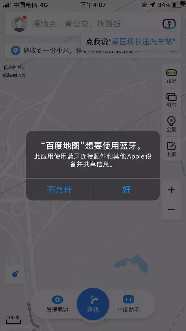 隐私保护方面,我们知道在iOS 13中,应用无法随意访问WiFi和蓝牙,实不相瞒,这一点是我在系统更新后的首个发现,因为重启后第一个动作是启动微信,随即便看到是否允许使用蓝牙的询问,这才知道原来想访问蓝牙的应用还不少,比如百度网盘、百度地图……