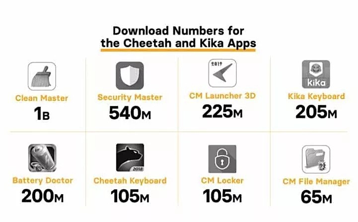 报告指出这8款应用中有7款来自总部位于北京的猎豹移动,另一款来自总部位于硅谷的Kika Tech,该公司在2016年获得了猎豹移动的大笔投资。