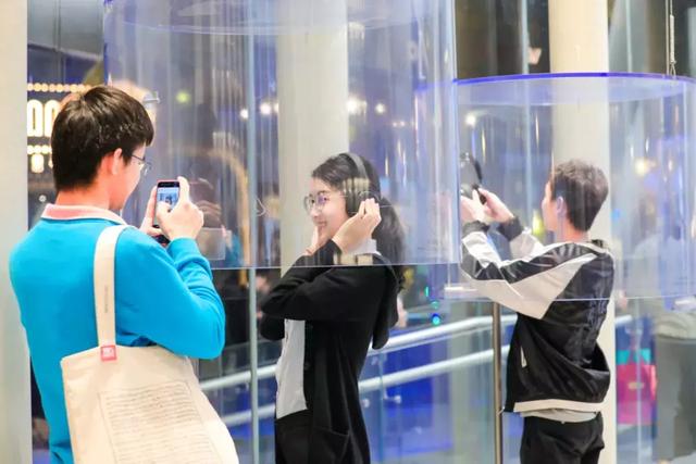 vivo Lab概念店的二层就更有意思了,以“非凡,因你不同”为创意概念,设计成了一个沉浸式的拍照体验空间。由9个数字创意互动装置,贯联形成了一套包含探索、认知、创造和沟通4个阶段的个人体验变化,精心安排了一场约30分钟的探索旅程。