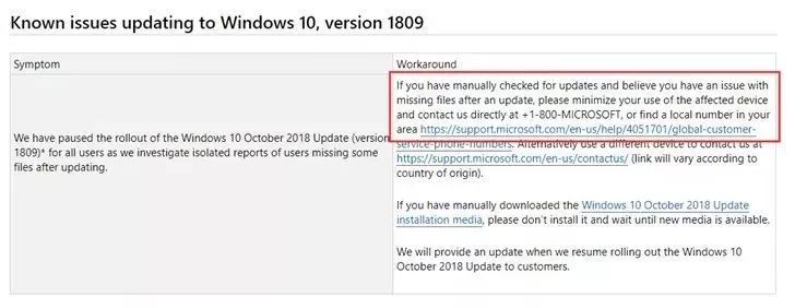 如果你手动检查了更新,并且确定更新后遇到遗失文件问题,请尽量减少使用受影响地设备,并直接通过+1-800-MICROSOFT与我们联系,或者查阅你所在地区的本地服务号码。