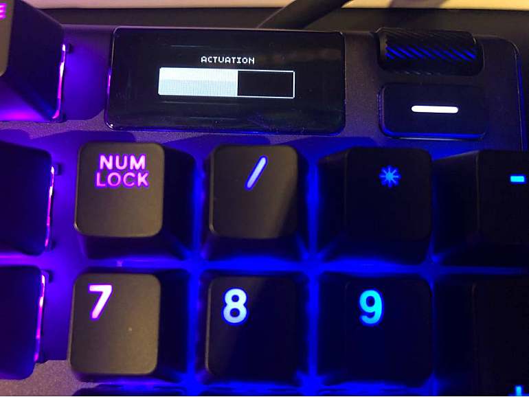 值得注意的是其采用的OmniPoint可调节触发键程轴体。经常打字的用户以及部分游戏玩家喜欢较长的按键触发距离,有的甚至可以达到3.6mm,以保证每一次输入都精准无误。而另一部分玩家,特别是电竞选手,喜欢较短的触发行程,以便更快完成操作,抢占先机,他们倾向的触发距离最短只有0.4mm。在过去几年间,尽管市场上出现了一些拥有更快触发速度的机械键盘,但它们在准确度方面的表现并不理想,玩家即便只是轻轻误碰了附近按键,也会导致意外操作,甚至输掉比赛。