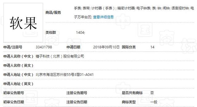 而今有消息称,锤子科技又要进入另外一个行业——智能手表。锤子科技早在9月便注册了一款名为“软果”的商标。注册服务范围是手表、表带、计时器、闹钟、表,语音报时钟等,都是跟时间有关的电子产品。