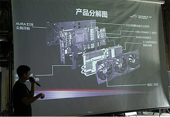 作为G致组合的重要成员,华硕ROG显卡自然也不容错过。华硕电脑产品中心显卡产品经理甄强介绍了华硕显卡在设计、功能上的创新,同时针对今年的图灵显卡设计了全新的散热器,ROG STRIX GeForceRTX™2080 Ti / 2080 等显卡上使用了轴流风扇、镜面直触等高效散热技术,显著提高了散热效率,让玩家游戏体验更畅爽。