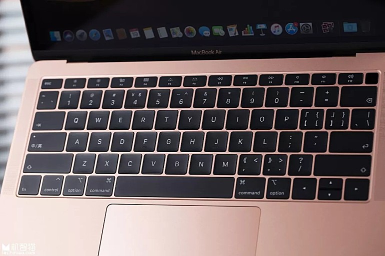 与此同时,全新MBA也采用了新一代苹果笔记本独有的蝶式按键结构,而且来到了第三代(与2018款MacBook Pro 13相同),键程短键帽平,但整个键面上的力度均匀性做得很好,即便是按到角落上也不会有手感差异,触点上覆盖了一层硅胶膜以防止灰尘进入导致按键失灵,每个按键还都设计了环境光传感器,可以随光照变化来自动调节。