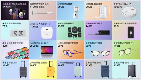 小米9SE推出的布朗熊定制版,则是和Line Friends达成了合作,布朗熊套装中则包含了定制版移动电源、贴纸套装、限定保护壳、收藏证书、限定版包装等一系列主题配件,6GB+128GB版本售价2499元,限量5000套。除了手机定制版外,小米还推出了同样主题的20寸小米旅行箱,售价为399元,限量3600个。