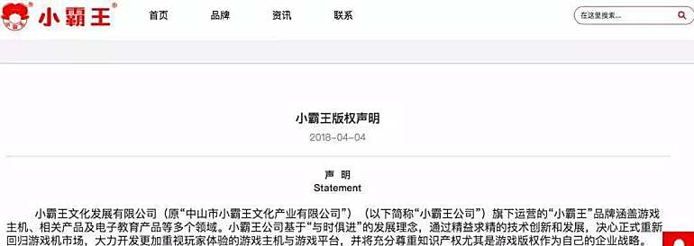 为什么这么说?2018年4月,小霸王发布版权公告,宣布正式重新回归游戏机市场。