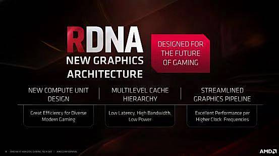 下面是主角RDNA架构来了。“为未来游戏而设计”是AMD官方给RDNA架构的定位,根据工程师的介绍,GPU研发团队经过对大量游戏引擎的研究,才最终定下了RDNA架构的设计方案,确保其能在目前和未来的游戏中发挥出最佳的效率。让我们来看看RDNA架构的几大亮点。