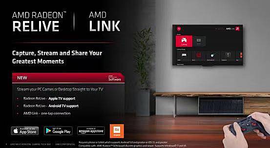 按照惯例,新显卡必然会有配套的新驱动一起发布,那么这次“肾上腺素2019”给我们带来了什么黑科技呢?首先是AMD Radeon Relive和AMD Link,这次添加了对Apple TV和安卓TV的串流投屏支持,AMD Link也加入了一键链接的功能。特别值得一提的是,这次AMD还专门与小米合作,看来小米设备用A卡串流必然是目前安卓平台的最好选择之一了。