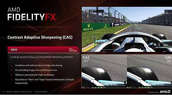 AMD FIDELITYFX则是AMD Radeon Image Sharpening的开发工具版,由AMD提供给游戏开发者,在制作游戏的时候就加入增加画面对比度和锐利度的效果,玩家在玩游戏的时候就能直接享受了。
