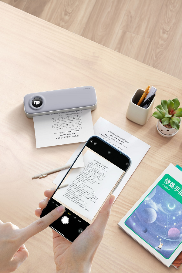 以最新款喵喵机F2S为例,体积仅有文具盒大小,机身内置大容量锂电池,学生可以将它装进书包,随时随地满足打印需求,不受学习场景的限制。