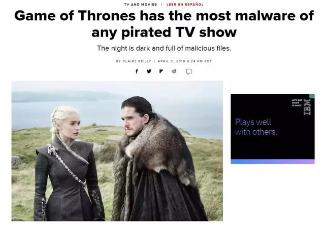 当然,由于各种原因,也有很大一部分人是通过磁力链接、下载等方式观看的。虽然他们并不能给官方带去任何收入,但他们所使用的“渠道商”们也通过提供盗版内容,获得了不少的收益。除了常见的广告等方式,据美国媒体CNET报道,安全公司卡巴斯基最近对伪装成2018年热门电视剧集的恶意软件进行了研究。根据最终公开的研究结果来看,《权力的游戏》的盗版最为危险。