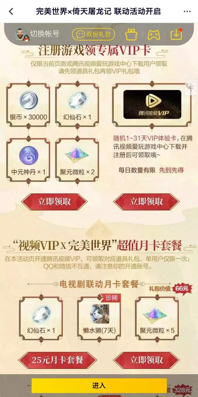与完美世界手游的活动内容是,进入腾讯视频APP,搜索进入爱玩游戏中心。在游戏列表中找到完美世界。下载游戏并注册后,返回活动页面领取礼包即可,这里能领到的是随机3~31天的腾讯视频VIP。