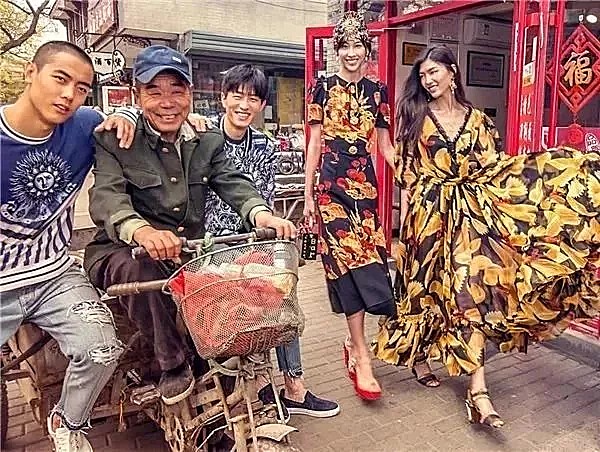 2017年4月,D&G在微博上发了一系列标签为“#DG爱中国#”的营销视频和硬照,模特穿着D&G的时装,站在天安门和老城区里,朴素的路人融入其中。
