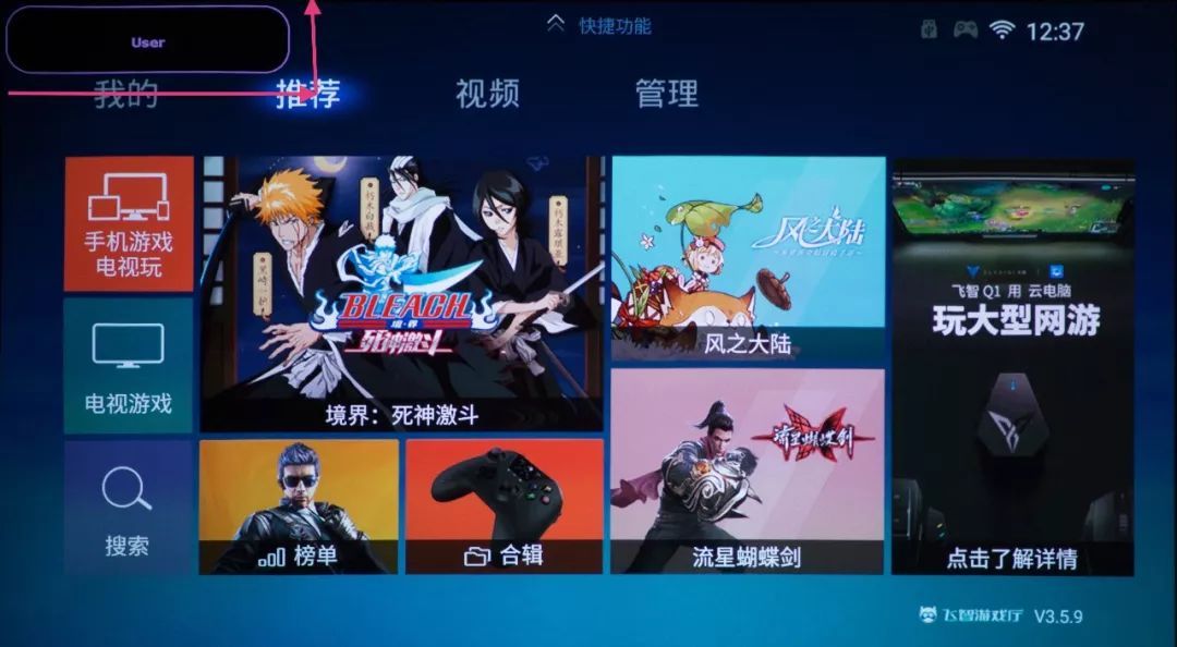 系统预置的“飞智游戏厅”提供丰富的游戏内容