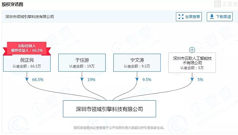 据企查查数据显示,由王欣担任股东和CEO的深圳市云歌人工智能技术有限公司今日新增了一项对外投资,所投公司为深圳市领域引擎科技有限公司。