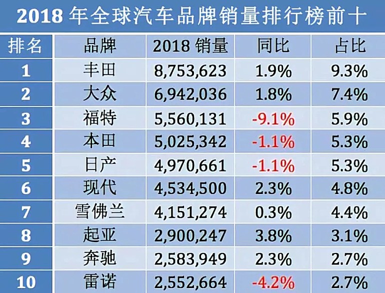 近日,全球各大汽车集团的2018年销售报告相继出炉,国际知名市调机构《Focus2move》也发布了全球汽车销售排行榜。