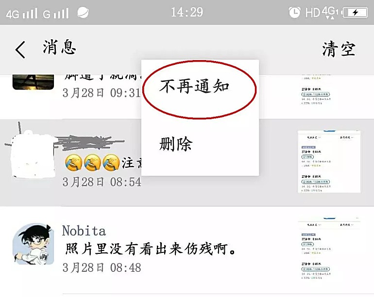 实际上,只要到消息列表左滑就有个不再通知,则之后该人的互动消息就不会再提醒了。再次声明下,小狮子只是为了完成稿件才用自己的朋友圈举例的,千万不要误会哦!!