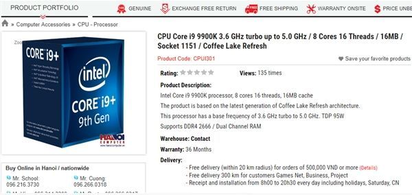 Intel即将推出第九代酷睿9000系列(Coffee Lake-Refresh),虽然工艺还是14nm,虽然架构还是Coffee Lake,但在规格上的变化还是相当大的,而且很多都颇为意外,并会带来新的Z390主板。经常提前准确曝料的越南科技网站和电商这次又偷跑了,Hanoi Computer泄露了九代酷睿五款型号的核心规格参数,颇为值得玩味。