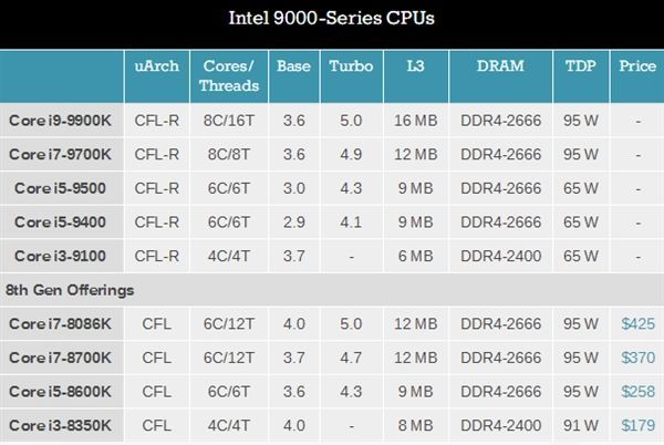 i9-9900K、i7-9700K两款高端型号大家都很熟悉了,都为Intel主流平台第一次带来了8核心,但仅有前者支持超线程。
