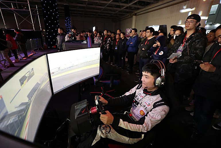 中国方程式大奖赛冠军,国家A级赛车手郑晚成在舞台上为现场观众呈现了一场精彩的神力科莎(Assetto Corsa)赛车表演赛,赢得现场掌声与欢呼。