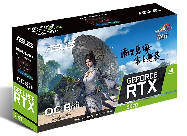 在此,重点介绍其中一款——华硕DUALGEFORCE RTX™ 2070电竞特工系列显卡。该卡基于英伟达图灵(Turing)架构和全新RTX™平台,搭配8GB GDDR6显存,能够完美流畅运行新版本《剑网3》,带玩家领略世外蓬莱的绝美江湖。