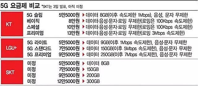 韩国5G资费:8GB需325元