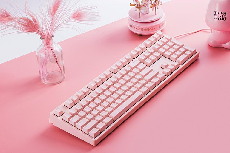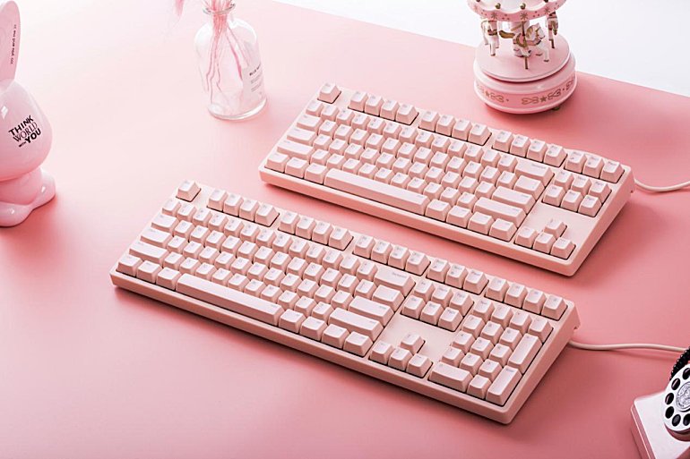 ikbc在5月20日发布了两款凝彩粉机械键盘C200和C210,这是ikbc面向女性用户推出的产品。颜色上选择了比较甜美的类霜糖色,细节上也做的非常极致,不仅仅是键帽和外壳,钢板、脚贴,乃至型号标签均为粉色,无论从哪个角度看观感都非常一致。