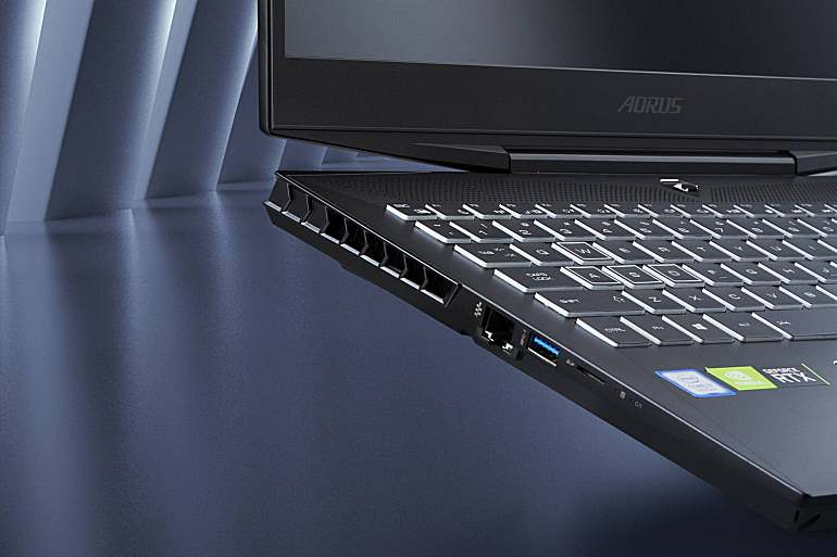 除此之外,Aorus 15-XA的接口设计也很人性化,采用三面布局的规划方案,左右侧均有标准USB3.0,视频输出和电源则在背部,接口种类丰富,扩展能力符合顶级游戏本的应有水准。
